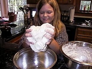 So we got started and I had her doing every step on her own, me just watching. She started stirring in the flour and she was getting a little tired of stirring and she said, “Don’t we have electronics for this now?” Well, yes, in fact I did have a bread machine once. It was a gift, and I tried it out a few times, but it’s just not homemade bread if it isn’t made by hand, and I have no idea where that bread machine is now.