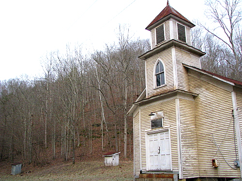 The girls’ outhouse is closest to the church. As well it should be. Of course, you still gotta leap over the little branch of the creek. Don’t be wearing those high heels with the Sunday dresses…..