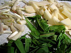 Wash the leaves and bulbs in cold water, rinsing well. Lay out to dry thoroughly. To use, cut off the rooty ends from the bulbs, then separate the white parts of the ramps from the leafy greens. Slice the white parts in sections depending on your recipe. The leafy greens can be left whole or chopped, also depending on how you plan to use them. Ramps can be stored in an airtight container in the freezer for months or the refrigerator for a week or so if you don’t intend to use them immediately.