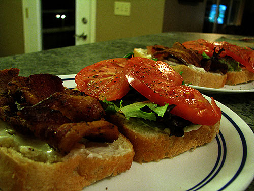 Bacon, lettuce, and tomato on Grandmother Bread. Perfection.