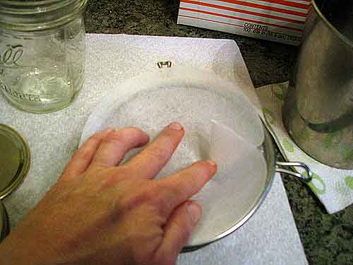 Before chilling the milk, I wash my hands then take out a fresh milk filter. Milk filters (available at farm supply stores) are somewhat similar to coffee filters, but not exactly. Get real milk filters. Don’t use coffee filters.
