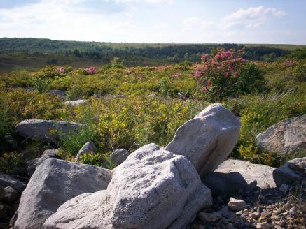 Dolly Sods is an area of high elevation wind-swept plains on the Allegheny Plateau. At elevations of 2,600 to over 4,000 feet, the area has extensive flat rocky plains, upland bogs, beaver ponds, and sweeping vistas. The plant life and climate on this high plateau resembles northern Canada, and many species found here are near their southernmost range. I took this pic in the spring.