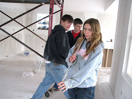 But there are so many fun things to do with scaffolding. “Do we get to keep it after the house is finished?”