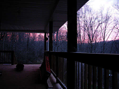 And I see a dog at the end of the day in the shadows of pink sunset on my farm.