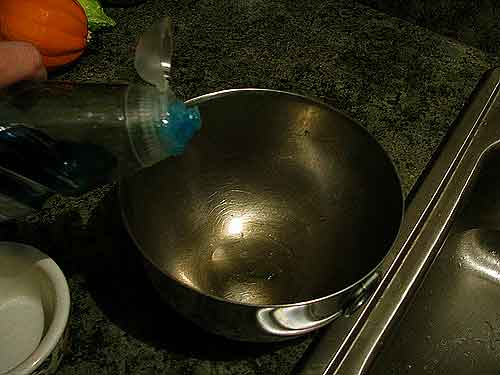 I use Clorox bleach and Dawn original blue dishwashing liquid for the udder wash and teat dip. I do not measure. (Consult the Fias Co Farm site for her measurement instructions.) I don’t measure because I’m dealing with one small doe and one small bowl. I drop a small splash of bleach in the stainless steel bowl, followed by a drop of Dawn.